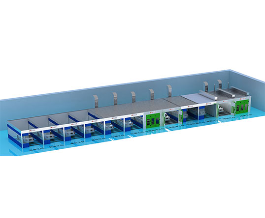 整條鈑噴流水線配52臺(tái)移動(dòng)小車和6條*44.9米/條=269.4米軌道;